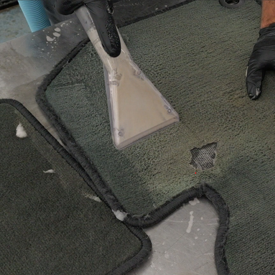 Spray een lichte nevel Stipt Interior Matt over de bekleding en borstel dit rustig in. Hiermee week je het vuil los zodat het straks makkelijk naar boven komt.